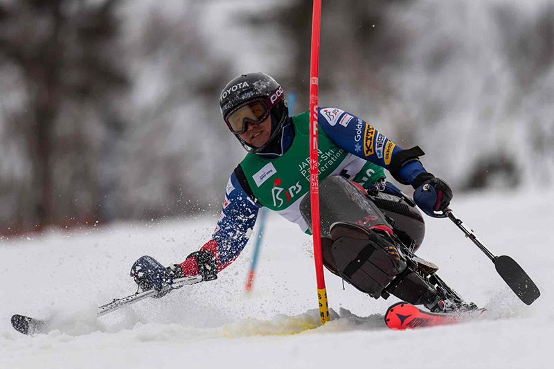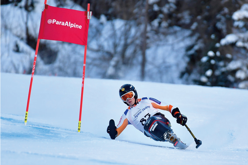 極限まで身体を倒しこみ、目では追えないスピードと動きで風のようにゲレンデを駆け抜ける滑りが、観衆を魅了する。数々の国際大会で頂点に立つ、世界トップレベルのパラアルペンスキーヤー。